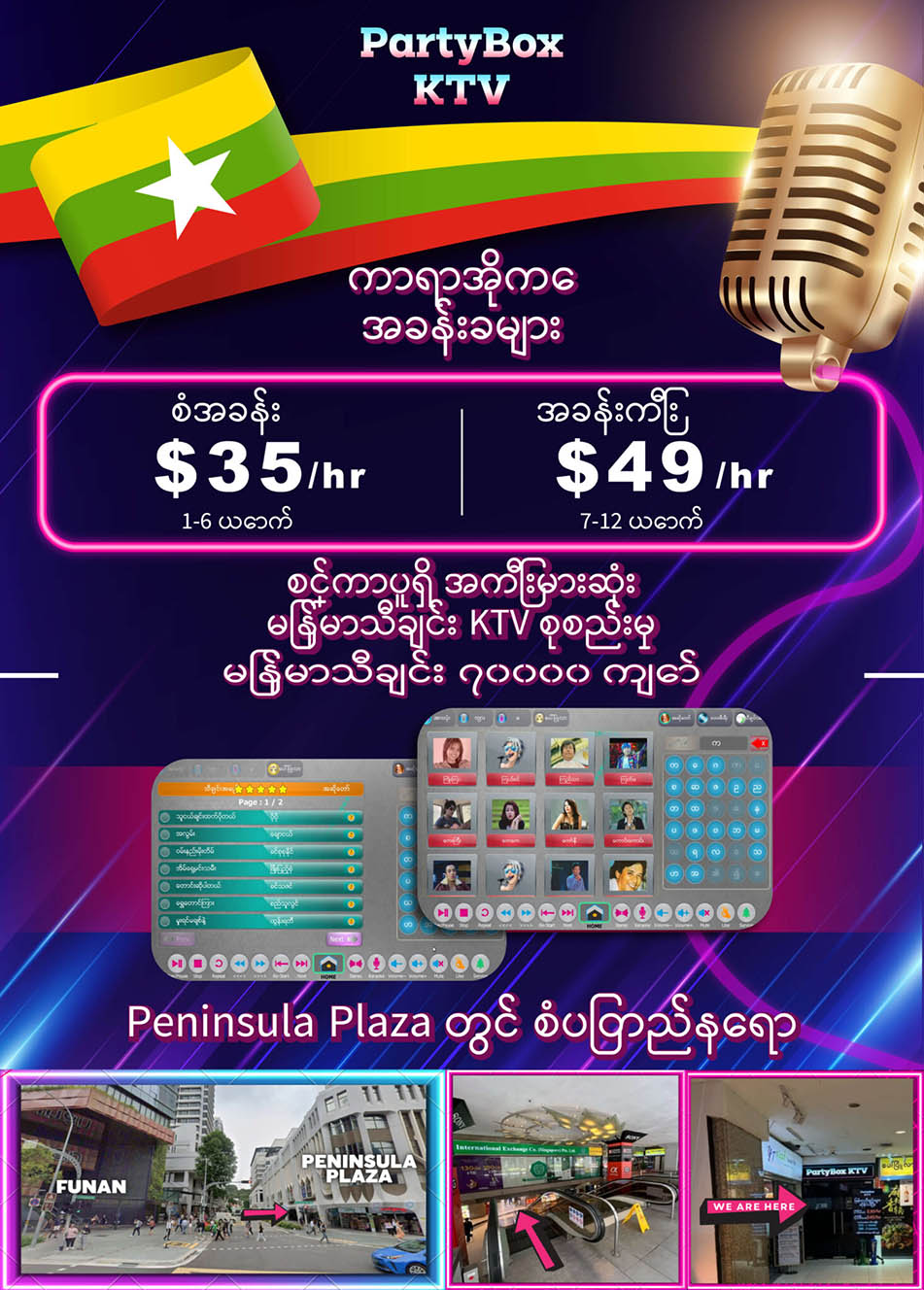 အနီးဆုံး MRT ဘူတာရုံမြို့တော်ခန်းမ (160m, 2မိ လမ်းလျှောက်)Clarke Quay (800m, 11မိ လမ်းလျှောက်)အနီးဆုံး ကားပါကင်Peninsula Excelsior ဟိုတယ် (1မိ လမ်းလျှောက်)– ကားပါကင်နှုန်းထားများGrand Park မြို့တော်ခန်းမ (1mမိ လမ်းလျှောက်)– ကားပါကင်နှုန်းထားများFunan (3မိ လမ်းလျှောက်)– ကားပါကင်နှုန်းထားများPENINSULA PLAZA, #B1-07111 NORTH BRIDGE ROADSINGAPORE+65 6233 2178ဖွင့်ချိန်တနင်္လာမှတနင်္ဂနွေ12:00pm – 3:00am ယခု ကြိုတင်မှာယူပါ။ Whatsapp